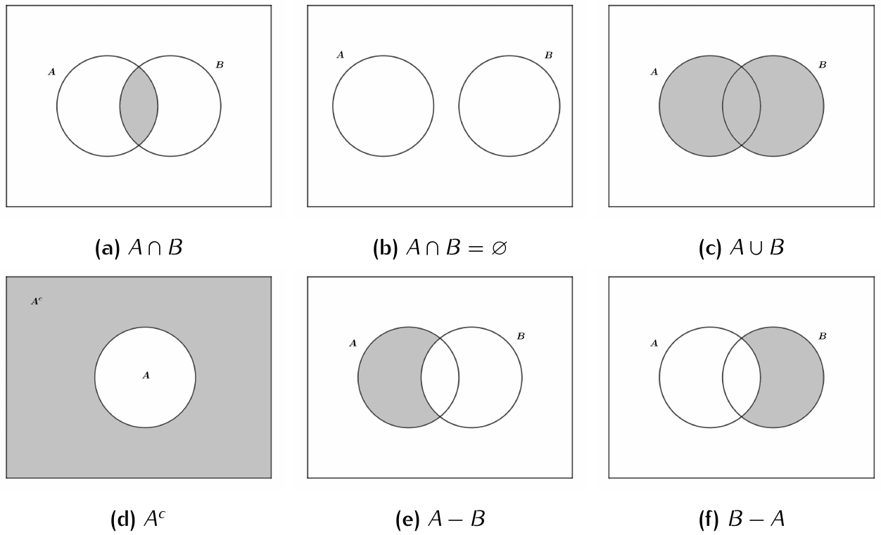 Seja \(\mathcal{A}\) a classe dos eventos aleatórios (conjunto de eventos aleatórios), temos as seguintes propriedades para \(\mathcal{A}\):