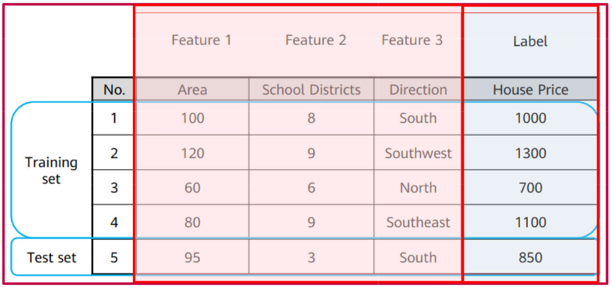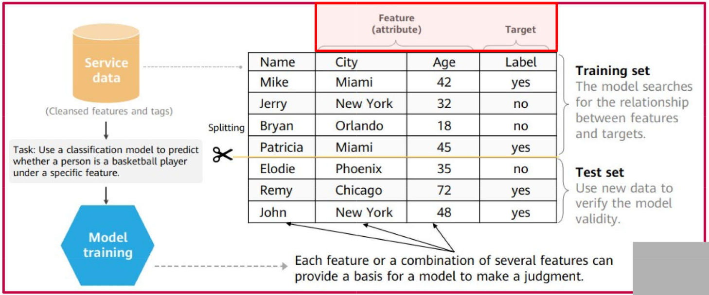 Dataset: designa amplamente os dados usados no aprendizado de máquina. Cada registro é nomeado de observação, exemplo, instância ou amostra (sample), a qual é formada por variáveis ou características (features). “Features” são partes relevantes para caracterizar as observações.