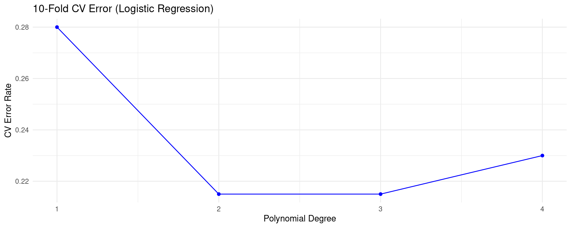 Interpretation (for seed=2): The quadratic model seems best based on this single split, as it has the lowest estimated test MSE.
