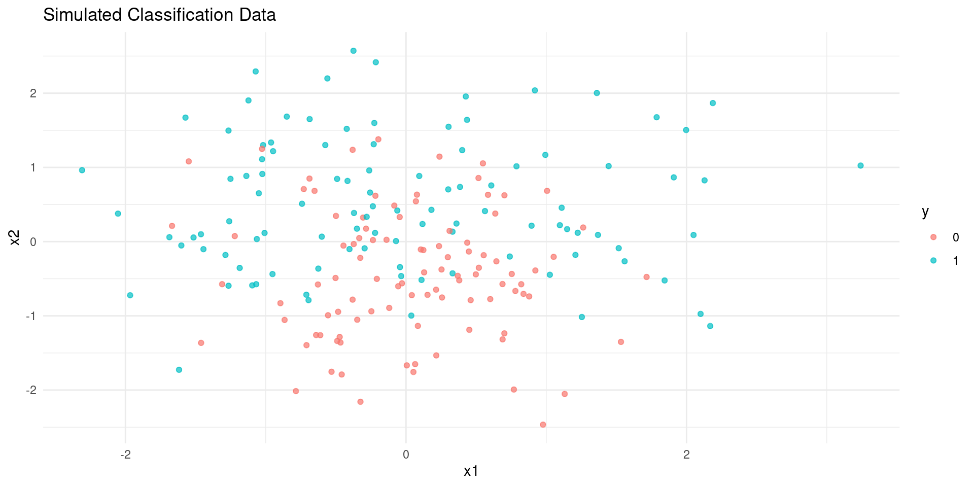 # Required librarylibrary(themis) # Using themis for tidymodels integrationlibrary(recipes)library(dplyr)# --- Create Sample Imbalanced Data ---set.seed(789)n_maj <-950n_min <-50p_features <-5X_maj <-matrix(rnorm(n_maj * p_features, mean =0), ncol = p_features)X_min <-matrix(rnorm(n_min * p_features, mean =2), ncol = p_features) # Separable# Combine features (X) and labels (y)dot_X <-as.data.frame(rbind(X_maj, X_min))colnames(dot_X) <-paste0("V", 1:p_features)y <-factor(c(rep("Majority", n_maj), rep("Minority", n_min)))original_data <-bind_cols(dot_X, Class = y)cat("Original Class Distribution:\n")print(table(original_data$Class))summary(original_data[original_data$Class =="Majority",])summary(original_data[original_data$Class =="Minority",])# --- Apply SMOTE using themis::step_smote within a recipe ---# This is the modern 'tidymodels' waysmote_recipe <-recipe(Class ~ ., data = original_data) |># Target ratio: 'over_ratio = 1' means minority class size = majority class sizestep_smote(Class, over_ratio =1, neighbors =5, seed =1011)# Prepare and apply the recipe# 'prep' estimates parameters (like neighbors), 'bake' applies the stepssmote_prep <-prep(smote_recipe)smoted_data <-bake(smote_prep, new_data =NULL) # Apply to original datacat("\nSMOTE'd Class Distribution:\n")print(table(smoted_data$Class))cat(paste("\nTotal samples after SMOTE:", nrow(smoted_data), "\n"))summary(smoted_data[smoted_data$Class =="Minority",])