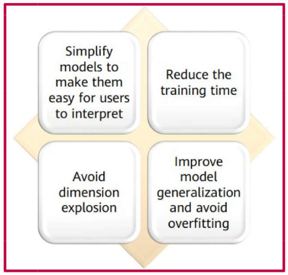 Geralmente, há um grande número de “features” nas bases de dados. Algumas podem ser rendundantes ou irrelevantes para a predição que se deseja fazer, podendo ser desprezadas.