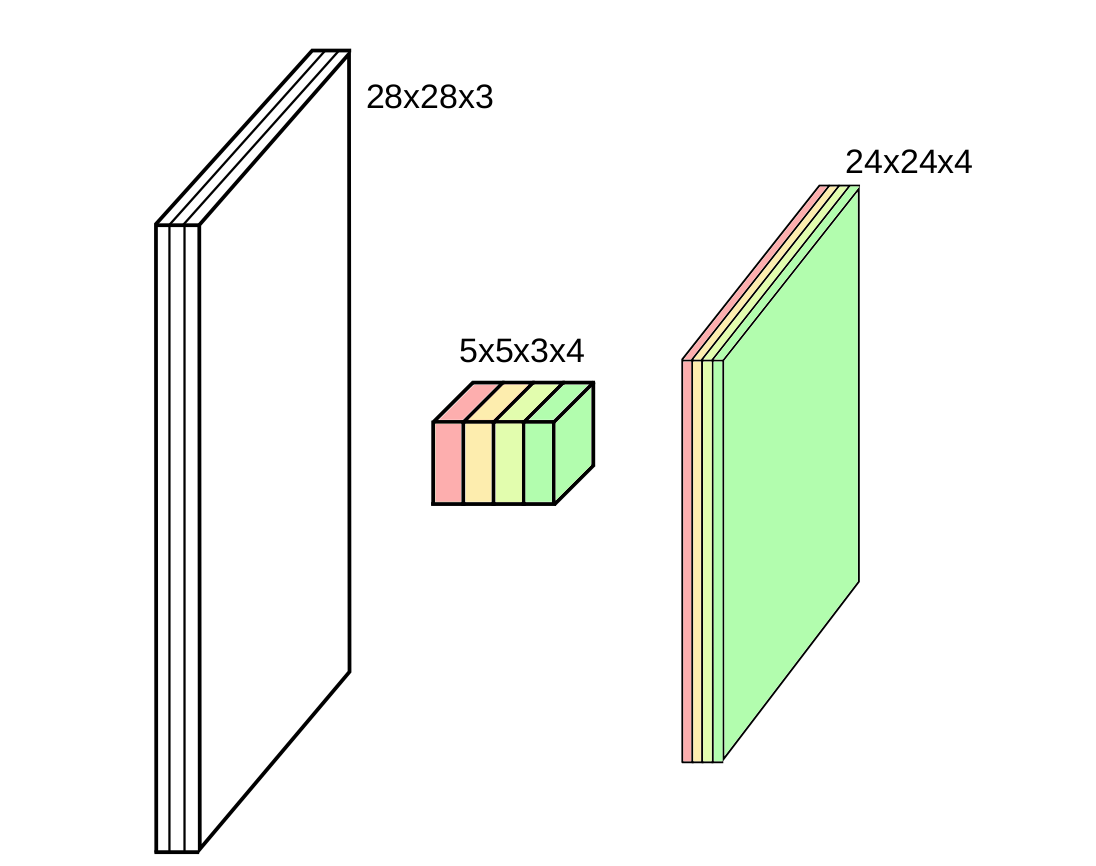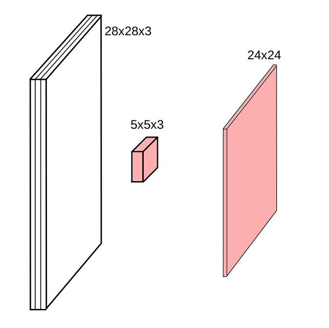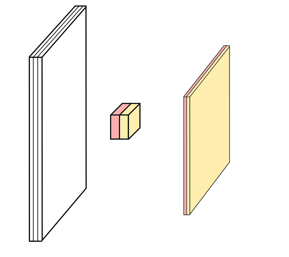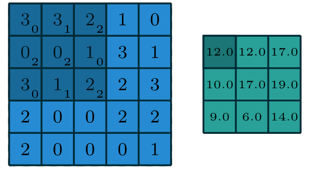 \[\begin{align} \begin{aligned} Nn = & \left\lfloor \dfrac{N - n + 2p}{s}\right\rfloor + 1 \\ Mm = & \left\lfloor \dfrac{M - m + 2p}{s}\right\rfloor + 1 \end{aligned} \end{align}\]
