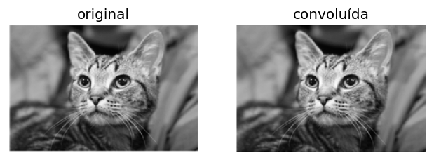 Logo, a matriz resultante da convolução \(S\) terá dimensões iguais a imagem de entrada, ou seja, \((N \times M)\).
