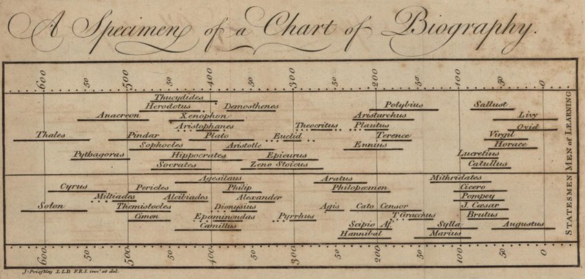 Linha do tempo de biografias, em 1765, por Priestley.