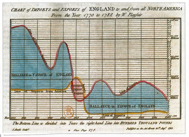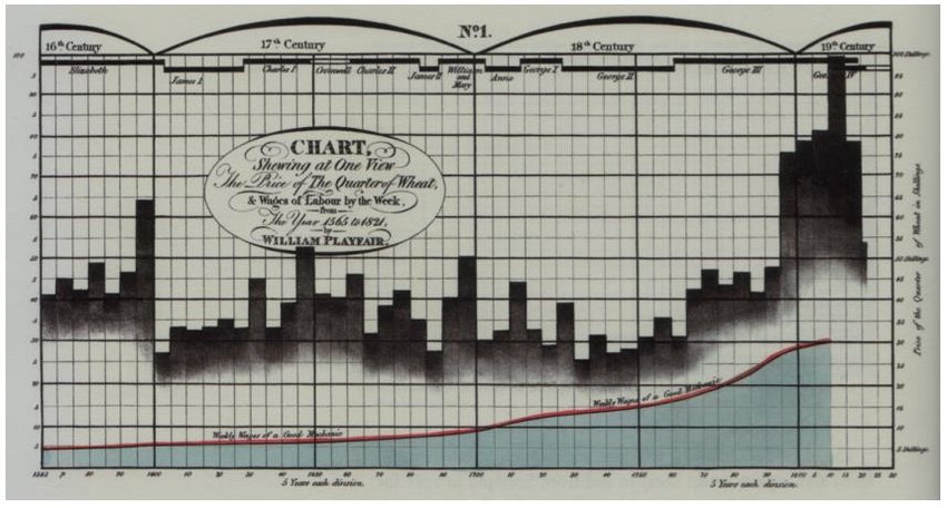 William Playfair (1759-1823) é considerado o pai dos gráficos estatísticos, tendo inventado o gráfico de linhas e barras que usamos com tanta frequência hoje.