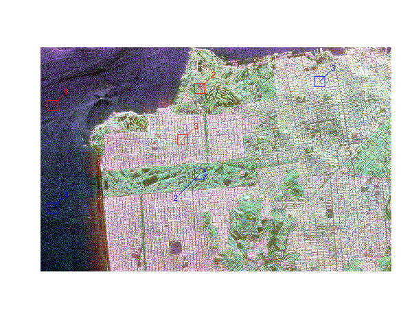 PolSAR data (\(Looks = 4\)) of size \(1600 \times 1200\) pixels acquired by the C-band RADARSAT-2 PolSAR system over the San Francisco area