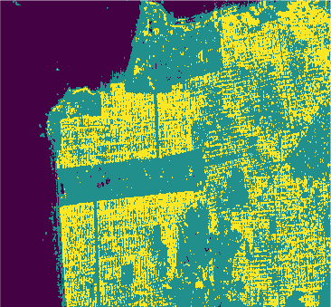 All classifiers for San Francisco-USA image had a kappa coefficient above 80% and below 93%. It is clear the nowadays deep learning techniques show classification results with kappa \(\approx\) 1. However, at mentioned above, deep learning techniques require extensive training and results are difficult to reproduce.