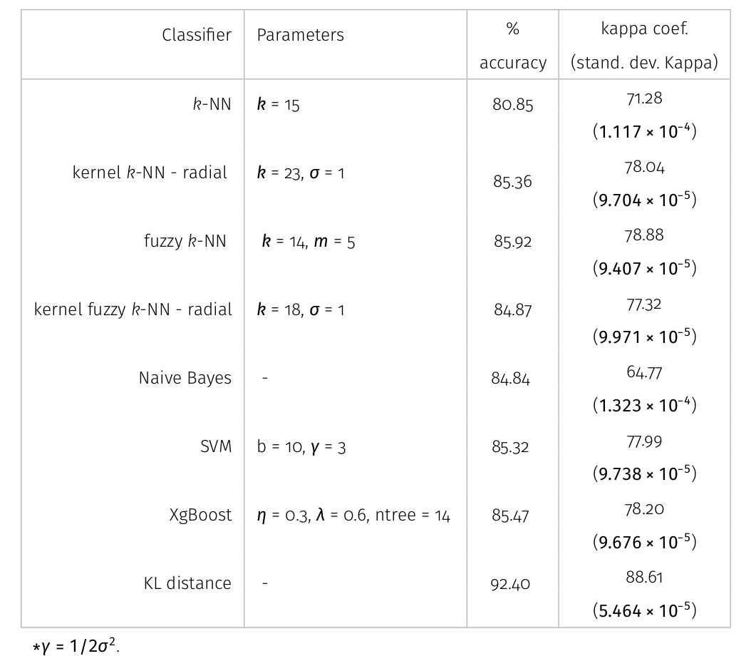 Thus, the distance between neighbors of the original data in the new feature space is calculated using a kernel function. The classification rule is equal to \(k\)-NN.