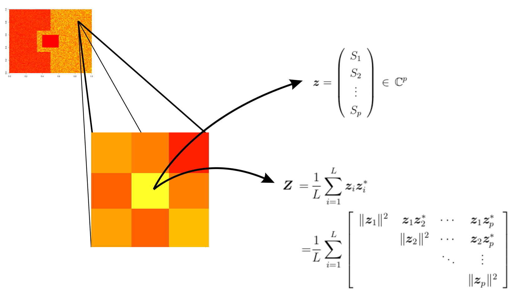 \(\mathbf{z}_i = (S_1^{(i)}\,S_2^{(i)}\,\cdots\,S_p^{(i)})^{\top} \, \in \mathbb{C}^{p}\) is the \(i\)-th vector associated with \(p\) polarization channels in a sample of \(L\) extracted information from the same scene, for \(i=1,\ldots,L\).