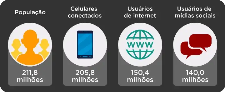 No Brasil, atualmente, 71% da população brasileira está acessando a internet e 66% estão nas mídias sociais, como blogs, Facebook, Twitter, Instagram, SlideShare, Youtube, entre outros, realizando algum tipo de interação e assim trocando dados e informações.